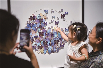 5月15日,海南省海口市举办的生物重生·克里斯自然艺术展上,100余幅采用千余种珍稀生物标本制作的自然艺术作品,为公众展现了生物本真而迷人的一面。中新社记者 骆云飞 摄