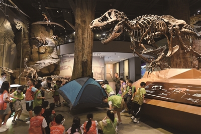 | 近日,浙江自然博物院安吉馆开启夜游项目,以游戏闯关、扎营夜宿等形式让孩子们对博物馆进行深度探索,培养对自然的好奇心。图为参加夜游的孩子们学习扎营,准备夜宿博物馆。 新华社记者 翁忻旸 摄 |