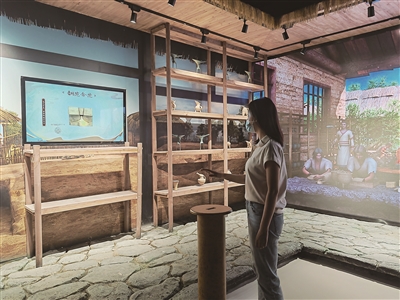 | 游客在数字馆参与“青铜铸造”互动游戏。 |