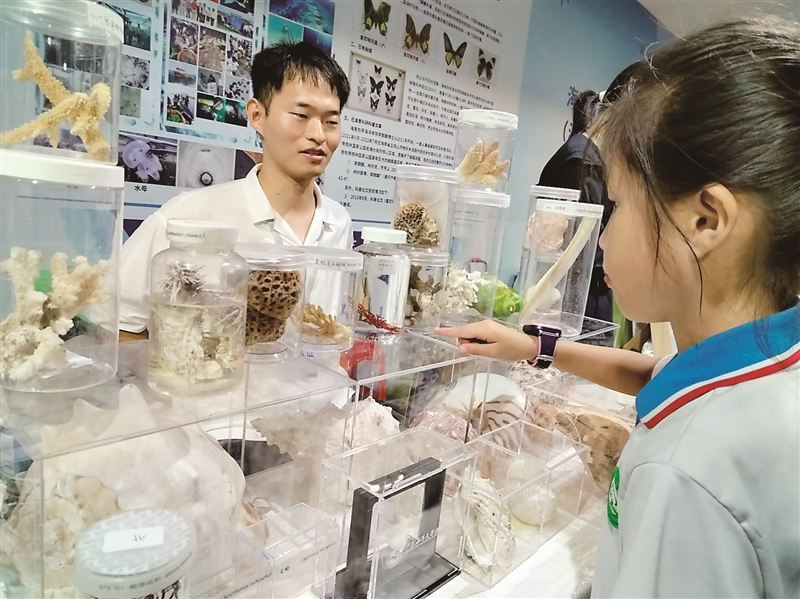 | ⑥海南省第20届科技活动月上,小学生参观海洋生物标本。 科普时报记者 王祝华 摄 |