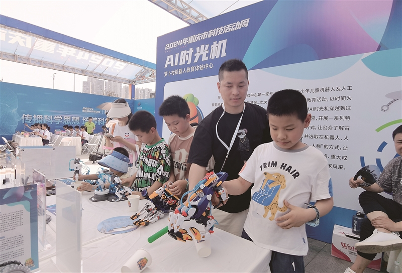 | ②重庆市科技活动周数字科普展区,小朋友们正在体验“AI时光机”。 (重庆市科技局供图) |
