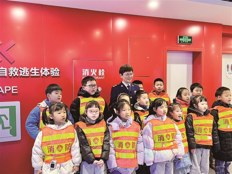 | 今年2月,姜波带领小朋友参观南京江宁区消防科普教育基地。(受访者供图) |