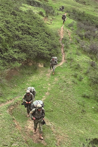 | 第77集团军某旅在海拔4000米的高原上进行40公里负重行军。梁焯坤 摄 |