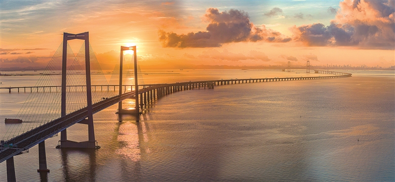 | 2024年6月21日,朝阳照耀下的深中通道,已经做好了各项准备工作,迎接即将到来的通车试运营。夏升权 摄 |