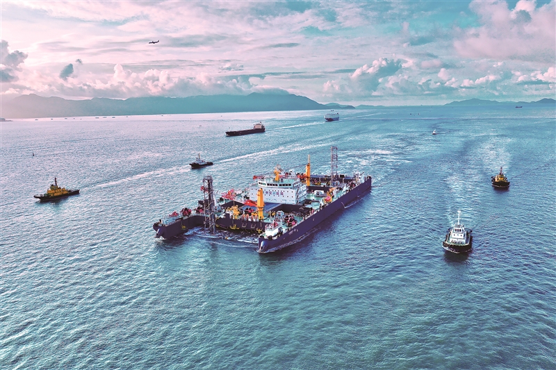 | ② 2021年9年15日,世界首制沉管浮运安装一体船“一航津安1”,在深中通道工程海域进行安装作业。卢志华 摄 |