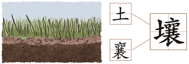 给“襄”增加一个“土”,就成了“壤”。《说文解字》对它的解释是:“壤,柔土也。”所谓“柔土”,就是经过耕作的、松软的土,而不是板结的、坚硬的土。