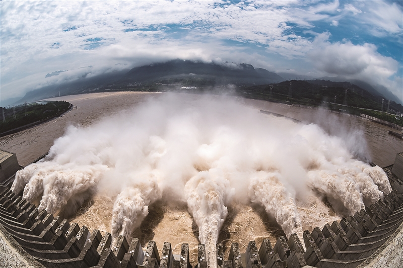| 7月16日,长江流域进入“七下八上”防汛关键期。图为三峡水库增开泄洪孔至9孔泄洪。新华社 郑家裕 摄 |