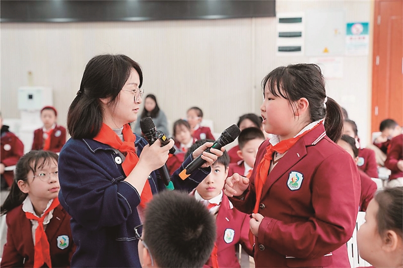| 图为2024年3月14日,受陕西省委宣传部、陕西省作家协会邀请,刘芳芳(左)在西安碑林区建国路小学进行科普科幻公益讲座。 (作者供图) |