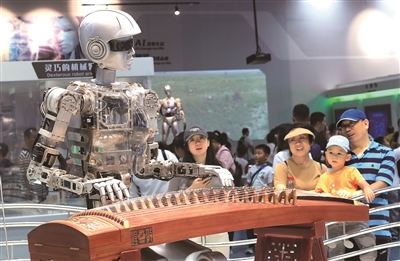 | 9月16日,中国科技馆,机器人优雅地弹奏起古筝,为观众带来多首耳熟能详的乐曲。 |