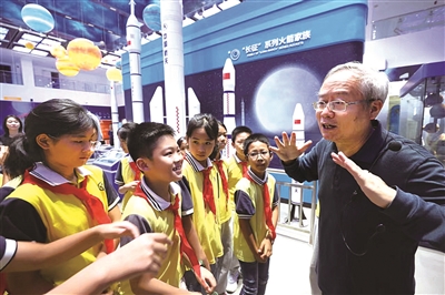 | 9月11日,湖北省老河口市科技馆,航天科学家白照广在为孩子们讲述航天知识。王虎 摄 |