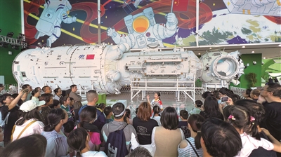 | 9月16日,中国科技馆,小小志愿者为观众讲解我国空间站“天和”核心舱。 |