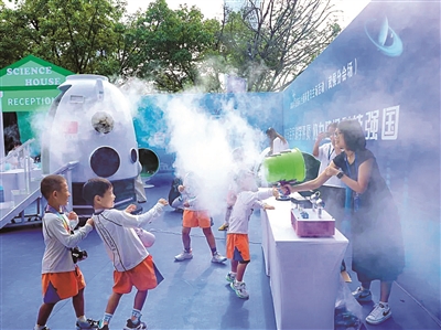 | 9月18日,四川省成都市,几位小朋友参加“百馆科普大巡游”互动体验展活动。(中国科协供图) |