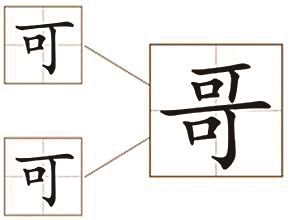 其实“哥”的本义和哥哥也没有半毛钱关系。古人把哥哥称为“兄”,和弟弟合称“兄弟”。那“哥”又是什么意思呢?它由两个“可”上下叠合而成。“可”里面有个“口”,表示和嘴巴有关,本义就是歌咏。两个“可”组成“哥”,还是表示歌咏。如果给“哥”加个“欠”呢?那还是表示歌咏!这个“欠”并不是欠钱,而是张大嘴,唱歌不就得张大嘴嘛。