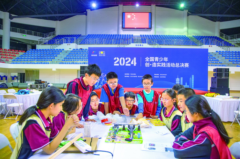 10月17日至18日,“2024年度全国青少年创·造实践活动总决赛”在武汉东湖学院举办。此项赛事由科技日报社主办,是全国科技活动周重大科普示范活动,也是今年东湖论坛的公众科普活动之一。来自全国各地的数百名学生围绕“一带一路·科创世界”主题,以富有创意和科技含量的作品,展示了他们在科技创新领域的“奇思妙想”。图为16日,参赛选手在做赛前准备。梅涛 摄
