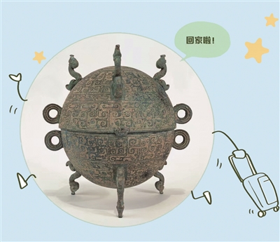 | 图为湖北省博物馆收藏的“嵌地几何云纹铜敦”。 图片选自《国宝回家记》(华景时代供图,北京联合出版社出版) |