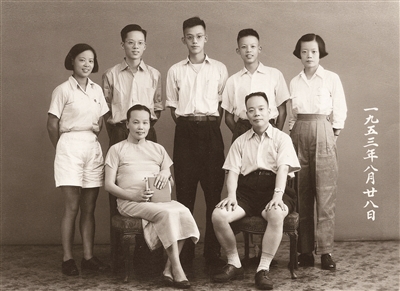 | 图①: 1953年暑假,王选(后排右二)和父母兄姊们齐聚上海,合影留念。 |