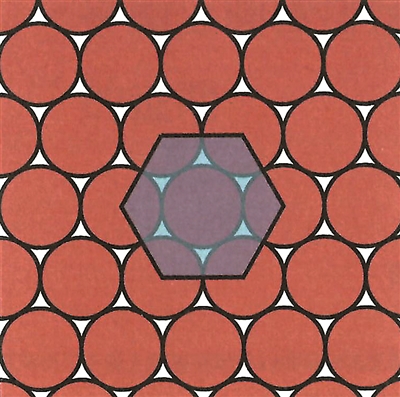 | 图为平面上圆的六角密堆积,选自《惊艳一击》。 |