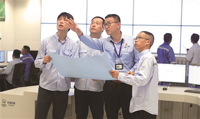| 在“玲龙一号”核岛主控室,工程管理人员在讨论设备安装技术方案和质量要求。 本版图片除署名外均由季春红摄 |