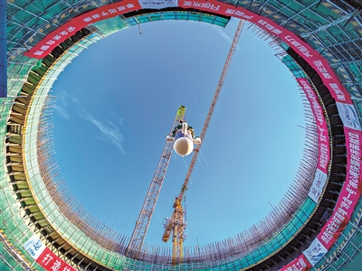 | “玲龙一号”反应堆核心模块使用“开顶法”从安全壳顶部吊装。刘玄 摄 |
