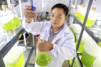 | 在毗邻海南昌江核电基地的白蝶贝繁育中心,工作人员提取藻类培育样本做比对实验。 |