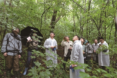 | 图为北京师范大学第二附属中学学生在东北虎豹国家公园观察植物生长情况。 (作者供图) |