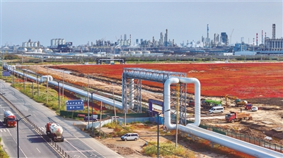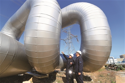 在黄海之滨蜿蜒的海岸线上,有一条长约23公里的特殊管线,它一头连着核电站,一头通着石化基地,将核能转化出来的清洁蒸汽源源不断地输送到石化基地的各条生产线上。