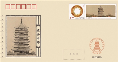 | 图①: 2024年,专家学者考察应县木塔。右四为本文作者。 (作者供图) 图②: 应县木塔牌匾和斗拱细部。 (作者供图) 图③④: “应县木塔”纪念封及内插页。 (中国集邮有限公司供图) 图⑤: “鬼斧神工”篆刻章。 (马国馨院士 刻) |