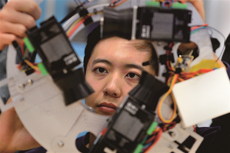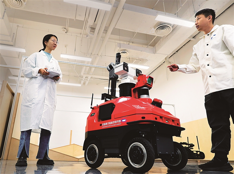 记者在原子能院安全所实验室里看到,除了辐射剂量探测芯片,科研团队还研制出多款地上能跑、天上会飞等能征善战的“机甲卫士”。四肢灵活、弹跳力好、奔跑速度快的机器狗就是其中的一项成果。在高清图传、核辐射探测器等系统的支持下,它像是长了千里眼和顺风耳,当遇到紧急情况时,能够快速获取数据,并向后方通风报信。而搭载热成像和雷达装置的无人机,则展示出了执行超视距核辐射探查的机动能力。