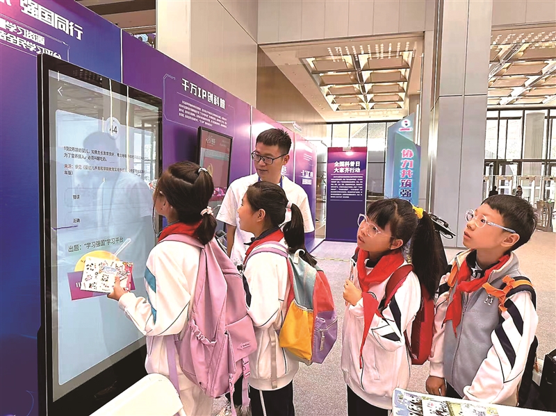 | 图为2024全国科普日活动期间,“学习强国”展位吸引同学们前来打卡。(作者供图) |