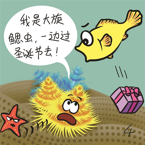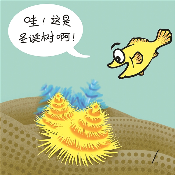 大旋鳃虫的鳃冠,色彩鲜艳,呈螺旋状,看起来就像一株株圣诞树。因此,大旋鳃虫也被称为圣诞树管虫。不过,这两“株”鳃冠可不是装饰品,而是大旋鳃虫的捕食器官,还具有呼吸功能。