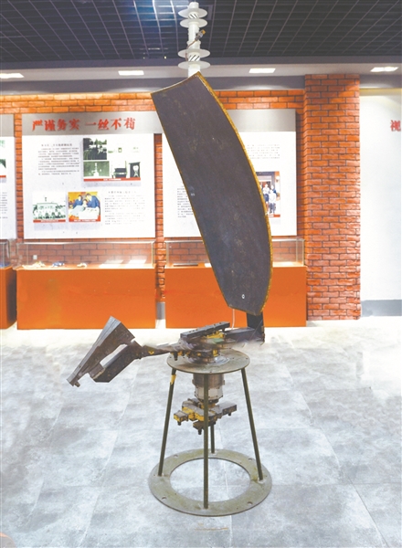 展厅二楼陈列着当年为东方红二号甲研制的天线备份件。天线的金属镀层已斑驳剥落,向观众诉说着当年五○四所人为国造星,迎难而上的历史。