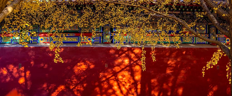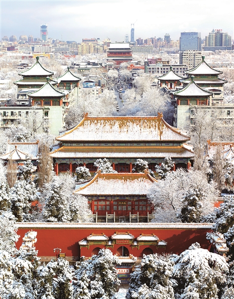 | 图①: 景山万春亭俯瞰中轴线北端。雪后初晴,凸显京城庄严雄伟。 图②: 故宫延禧宫脊兽与秋色枝叶交相辉映,更显金碧辉煌。 图③: 故宫西路宫墙彩绘鲜艳精致。朱天纯 摄 |
