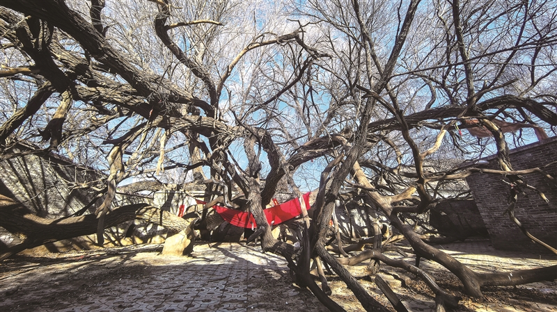 | 图为山西朔州安架山村千年古榆,枝干盘踞八方,造型奇特、生命力顽强,如戍卫边关的战神。倪云 摄 |