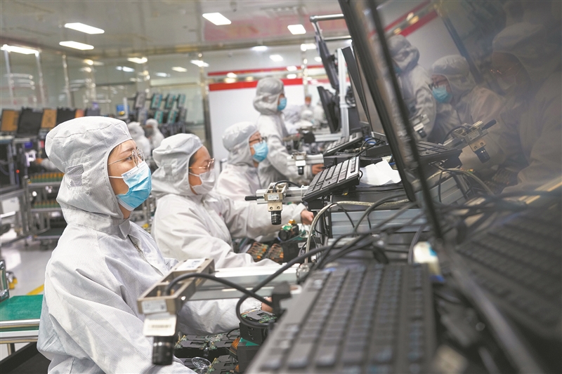 机械臂挥舞着灵活的“手臂”精准作业,动作流畅而迅速;AGV无人搬运车沿着设定的路线穿梭往来,高效地运输物料,整个生产过程井然有序,却鲜见工人的身影。工业互联网平台如同“智慧大脑”,实时收集、分析生产线上的数据,及时调整生产节奏和参数,让生产效率大幅提升。一个个犹如科幻般的场景,彰显出中国制造产业高质量发展的韧性与生机。