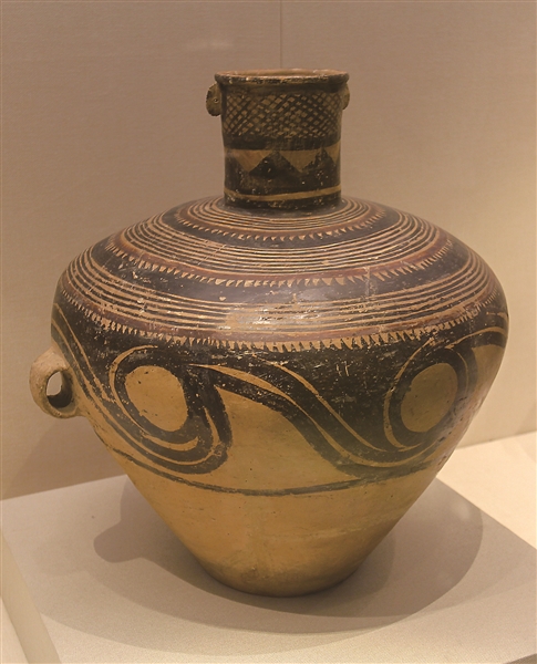 | 图②: 马家窑文化漩涡纹彩陶罐。(图源:甘肃省博物馆官网) |