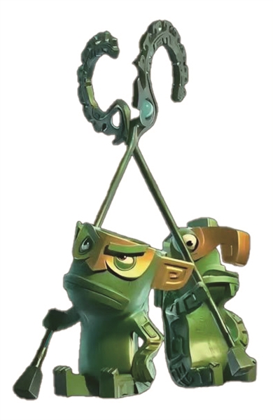 影片中,两位滑稽搞笑的结界兽,有着夸张的大粗眉、蒜头鼻和卷鼻子,他们的形象综合了三星堆戴金面罩青铜人头像、青铜大面具和青铜鹰形铃等出土文物的经典造型。