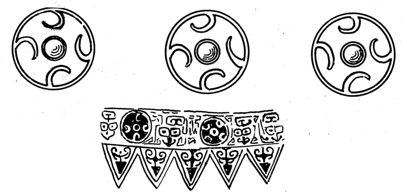 | 图④: 上为饕餮纹、中左为水纹、中右为雷纹、下为蟠螭纹。(河南省文物考古研究院供图) |