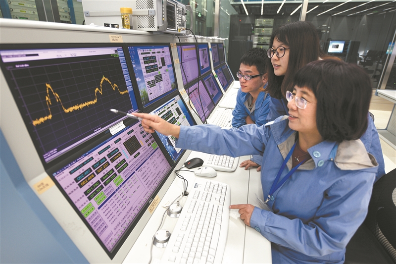 | 2018年1月27日,技术人员在气象卫星监控大厅锁定卫星信号。沈玲 摄 |