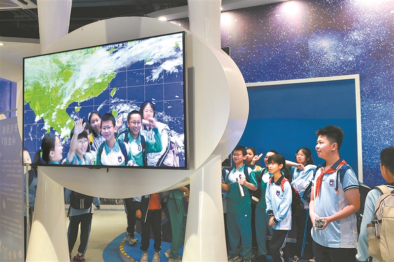 | 2025年3月13日,小朋友们在广州气象卫星地面站接受气象防灾减灾科普教育。刘子菁 摄 |