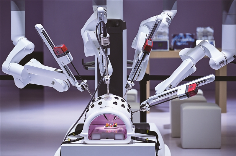 | ▲图为中国医学装备展览会上,手术机器人正在现场演示。 新华社记者 王全超 摄 |