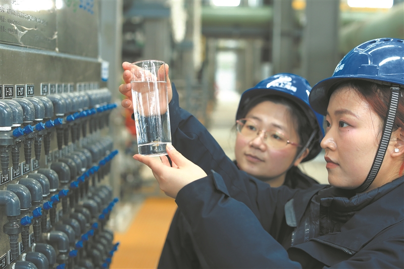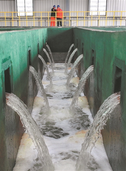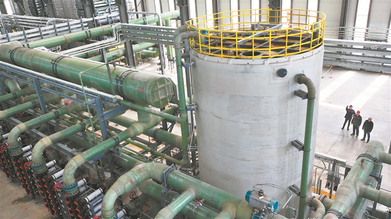 又咸又涩的海水,在经历了杀菌灭藻、混凝过滤、脱盐、除氯、pH值调节等精细的处理工艺后,化身为晶莹剔透的淡水,汇聚成池,顺着管道向着附近的工业园区奔涌而去,为工业生产“解渴”。