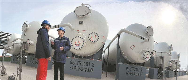 3月15日,科普时报记者在山东蓬莱海水淡化项目现场看到,数台机器轰鸣运转,各种仪表盘灯光闪烁,数智化管控贯穿海水淡化的全过程。在取水预处理车间,利用重力流入缓冲池的海水,将经过一次严格的“体检”,为下一流程的药剂配比“开处方”做准备。“体检”后的海水,在输送混凝池的过程中,系统会根据数据分析向其精准添加凝结剂。在它的作用下,海水中的藻类、小颗粒等悬浮物就像被施了魔法,迅速“拥抱”在一起,集结成较大的颗粒,沉淀在混凝池底,让海水变得更加清澈透明……