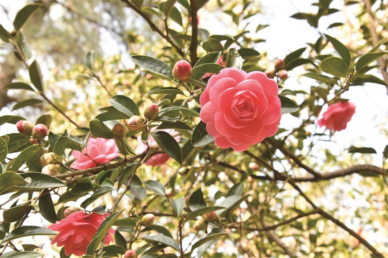 山茶被誉为云南八大名花之首,其中云南山茶尤为出众,其栽培历史超过1500年,花形硕大,品种丰富。明代担当和尚这么描述云南山茶:“树头万朵齐吞火,残雪烧红半个天。”他的朋友徐霞客也赞道:“滇中花木皆奇,而山茶、山鹃杜鹃为最。”