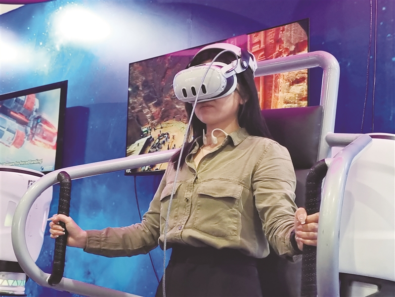 | 观众在体验沉浸式虚拟游戏。 本版图片由科普时报记者 张英贤 摄 |