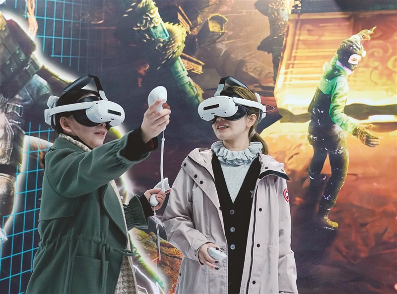 | 3月28日,2025中国科幻大会上,参观者在“幻聚·多维宇宙”沉浸式科幻展中体验。 新华社记者 张晨霖 摄 |
