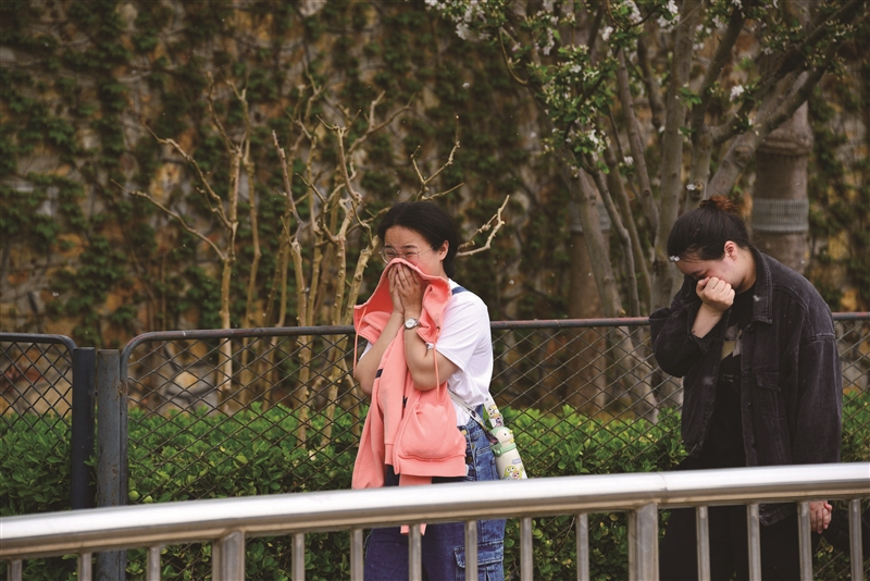 “上午10时到下午4时,这段时间花粉浓度较高,由于飞絮上吸附了很多花粉,因此,敏感人群应尽量避开这个时段出门。”郑远建议,如果不得不外出,花粉易过敏人群一定要做好防护措施。佩戴口罩,能有效阻挡飞絮及其中携带的过敏原进入呼吸道。