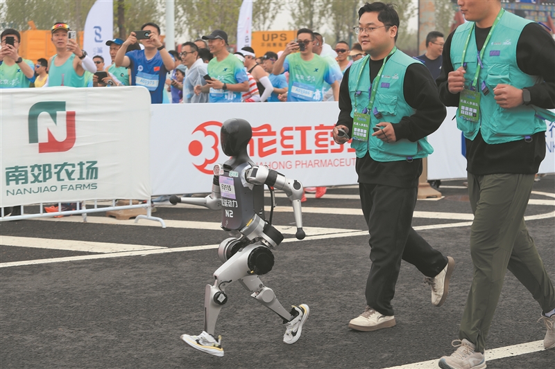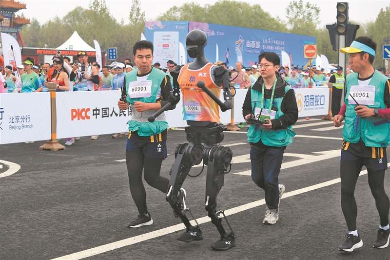 4月19日,全球首个“人机共跑”半程马拉松赛——2025北京亦庄半程马拉松暨人形机器人半程马拉松,在北京经济技术开发区举办。数千名人类跑者与20支人形机器人参赛队,从南海子公园南门出发,在泡桐花开的城市街道中,向着终点激情奔跑。