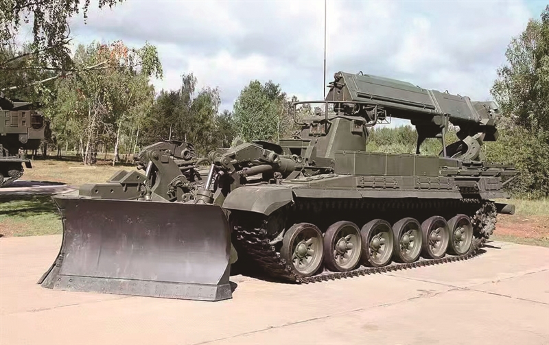 IMR-3M破障工程车在T-90坦克平台上研制,可搭配多种特种装置,是俄武器装备中名副其实的“斜杠青年”,不局限于单一“身份”,追求多重技能。IMR-3M破障工程车配有独特的推土铲、电动液压遥控机械臂和0.35立方米容积的铲斗,机械臂8米,起重能力为2吨,在战场上能轻松破路除障。在树木和石块覆盖地面开辟道路的平均速度为每小时300-400米,在雷区为每小时5-12公里;在积雪厚度120厘米的地面行驶速度为每小时15公里。