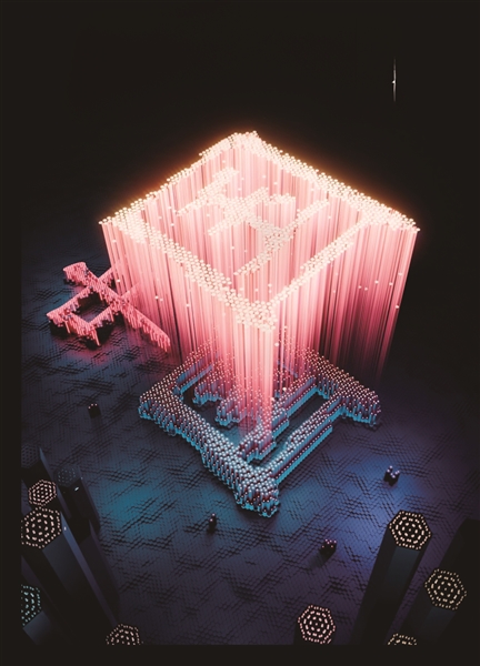 | 基于纳米激光器阵列构建的有源光频相控阵,可实现激光器的相干“同步起舞”,按需输出 “中”“国”等任意图形的相干激射图案。 (作者供图) |