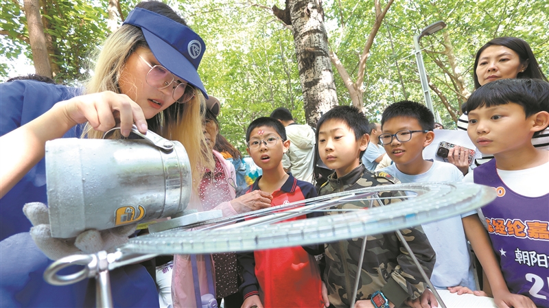给苹果做“体检”、探秘沙塔蠕虫的建筑智慧、解锁防水纸张的奥秘、感受液态空气“充电宝” 的能量奇迹、遨游奇妙的低温世界……在中国科学院理化技术研究所,30余个互动科学实验让这里变成了“科学乐园”。科研人员表演的《哪吒来了!解锁电影里的超能力》,更是用科学实验的方式为观众解读了哪吒神话里的“超能力”。